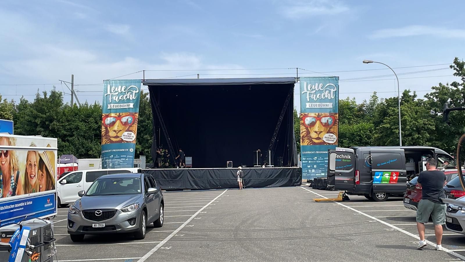 Leuebühni aufgebaut, noch ohne Tonanlage
