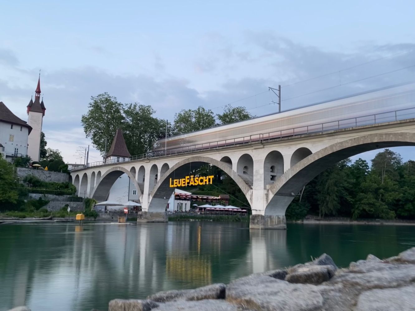 Zug über LEUEFÄSCHT-SCHILD